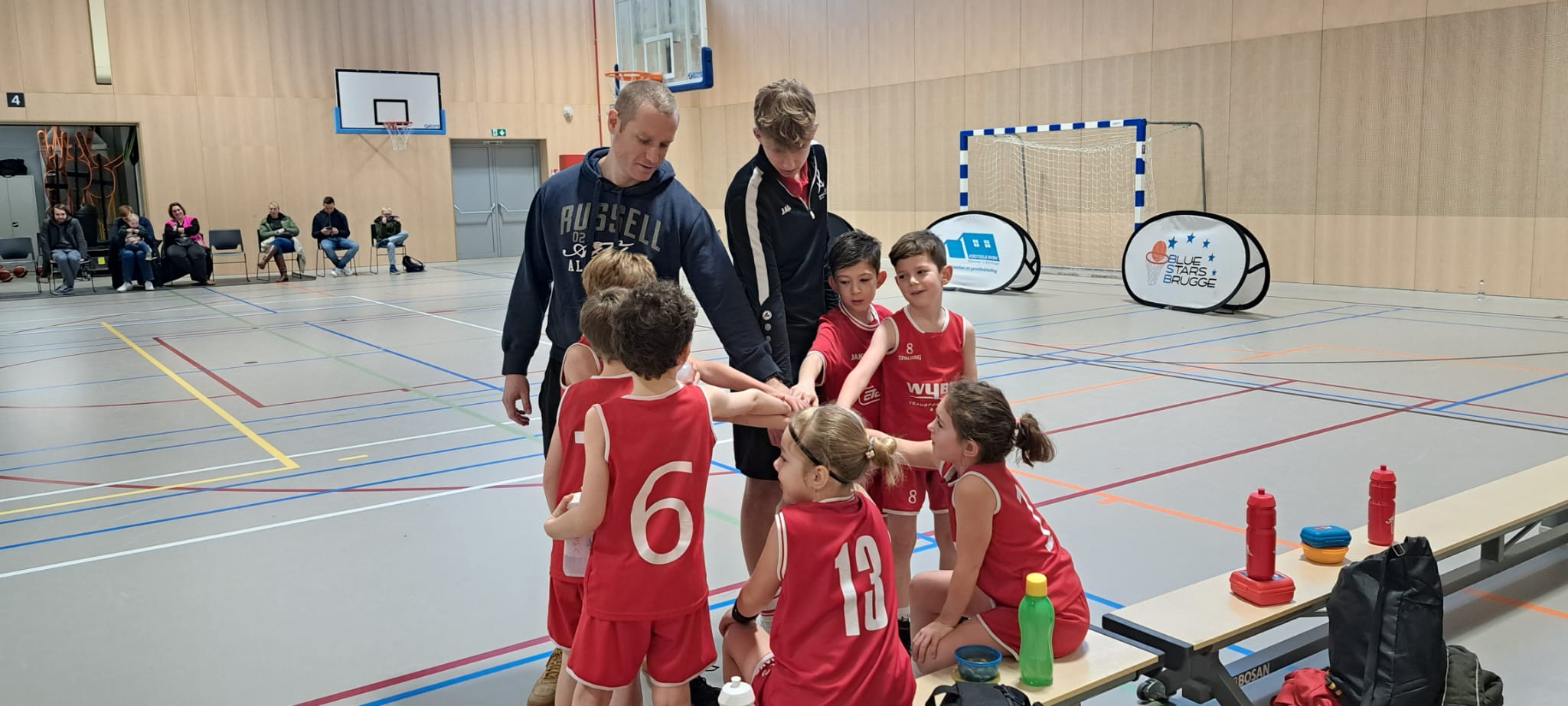Op zondagochtend 18 januari 2026 stond de U8-ploeg voor hun eerste uitdaging van het nieuwe jaar. Al om 9 uur traden ze aan tegen Blue Star Brugge, een vroege afspraak die meteen de toon zette voor een intensieve sportdag. Met hoofdcoach Jari Mortier in de examenperiode namen ad-interim coach Victor Leuwers en assistent Dailey Merlevede de leiding. Voor de aftrap benadrukten zij nogmaals het belang van rebounds, een cruciaal element in het spel van de jonge ploeg.