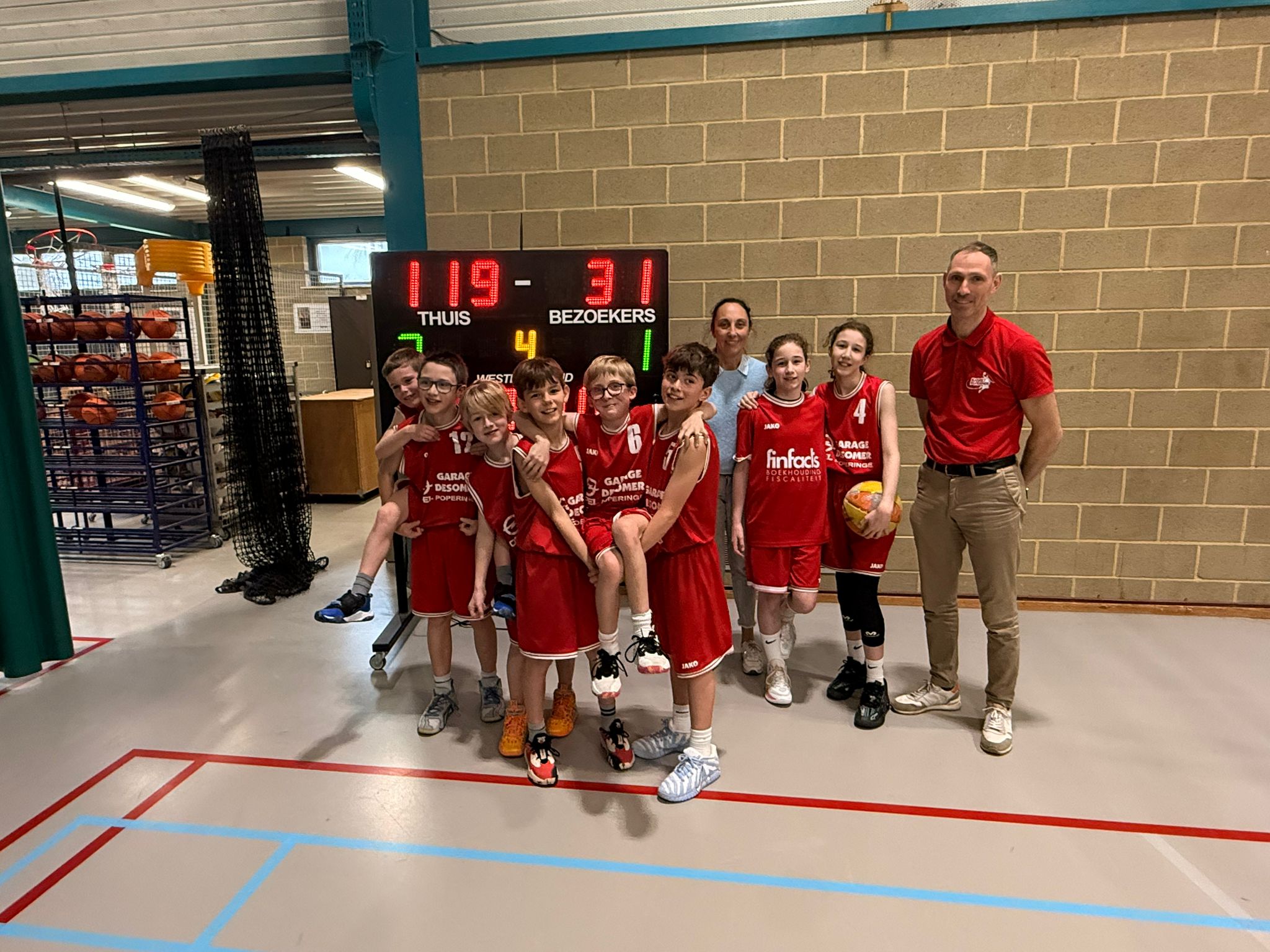 Zaterdag stond de 1ste wedstrijd van de terugronde op het programma. Onze spelertjes mochten op Poperingse bodem het beste van zichzelf geven. Vanaf de start werd het duidelijk… onze spelers gingen voor een duidelijke overwinning. Er werd met de nodige energie gespeeld en de scores werden vlot gemaakt. We zagen prachtige steals en mooi defensewerk.