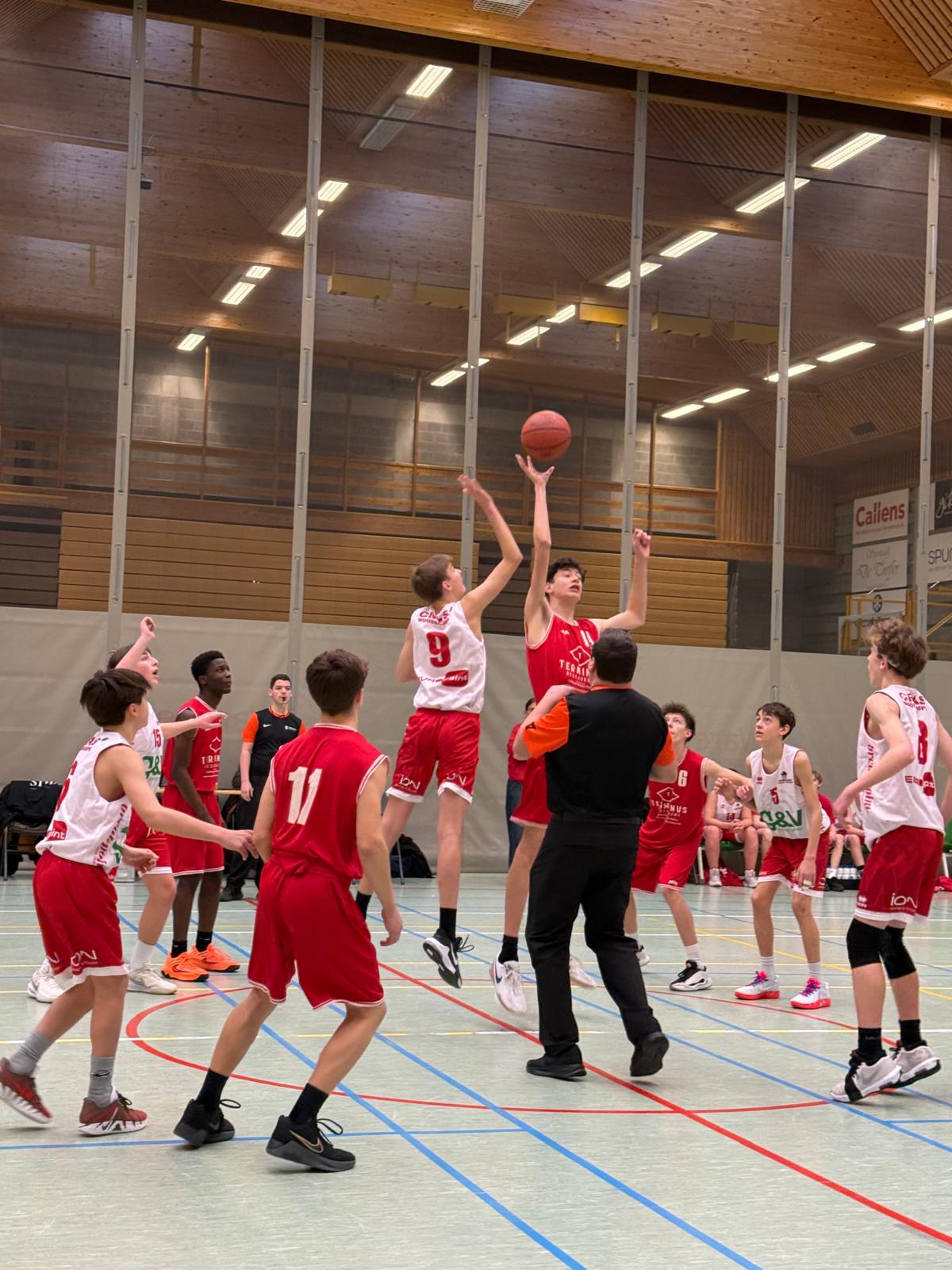Zaterdag in de vroege ochtend waren we op verplaatsing in Waregem. Wanneer je van start kan gaan met een volledige ploeg van eerstejaars versterkt met twee U14 spelers van heel hoog niveau, dan weet je welke weelde er heerst bij Waregem. Van bij het begin moesten onze jongens alert zijn, want de tegenstrevers waren van plan om de leider in het klassement te verrassen. Het duurde enkele minuten voor Poperinge op gang kwam en naarmate er druk op de tegenstander werd gezet, raakte Waregem meer en meer in de problemen. Poperinge domineerde de eerste helft en met een ruststand van 16 – 49 was het vrij duidelijk dat Waregem een maat te klein was.