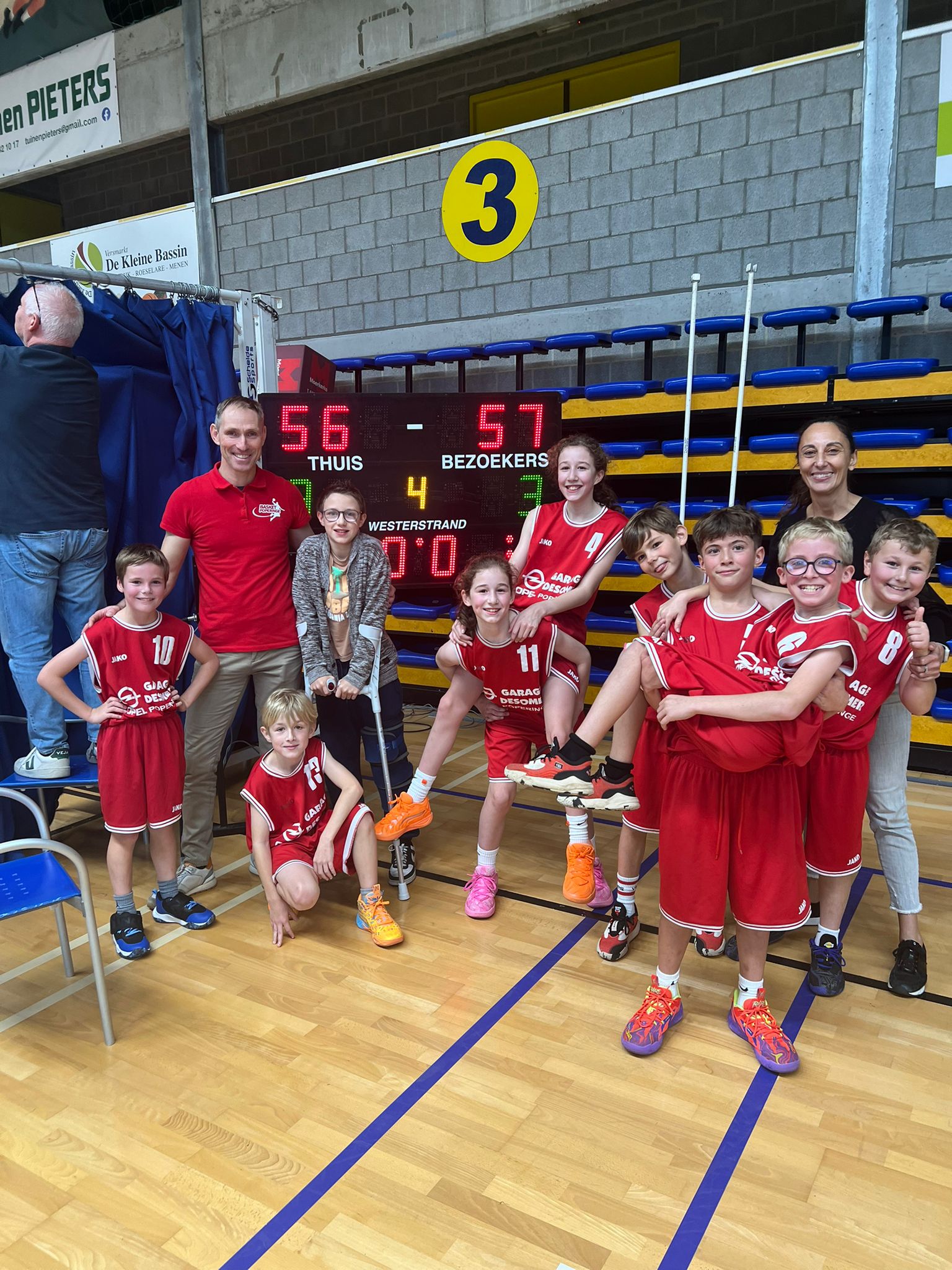 Op zondag 9 november stond er een uit-wedstrijd op het programma, dit keer richting Wevelgem. Na 2 weken zonder match en met een speler minder (die wel aanwezig was om zijn ploeg aan te moedigen) waren er wat vraagtekens. Na een bespreking in de kleedkamer en een korte opwarming was iedereen er klaar voor. En dat was duidelijk van bij de start. 100 % focus bij iedereen en we zagen een faire en gelijklopende wedstrijd. Aan de pauze stonden we 2 puntjes achter. Vol nieuwe energie en inzet begonnen ze aan de tweede helft! En wat hebben wij ervan genoten. Opnieuw zagen we mooie acties. De defense stond op punt, de ‘vinkeslag’ werd een paar keer mooi toegepast, mooie steals gezien…. In aanval zagen we prachtige drives, mooi afgewerkte lay-ups, shotjes vlogen binnen… de aanval was dik in orde. Teamwork lag duidelijk aan de basis van deze overwinning! De bank steunde de spelers op het plein volop door de bekende woorden ‘defense’ en ‘Poperinge’ te roepen. Ook de meegereisde supporters deden goed mee. De laatste minuten waren enorm spannend en bij het affluiten van de wedstrijd was het gejuich oorverdovend. De gezichtjes van zowel de spelers als de coaches spraken boekdelen. Deze overwinning deed enorm veel deugd en was zeker verdiend. Met 1 punt verschil, een thriller van een wedstrijd (niet goed voor het hart). Dit verslag werd met heel veel fierheid geschreven. Trots op wat onze spelertjes hebben bereikt, we kijken uit naar meer. Volgende week trekken we naar De Panne.